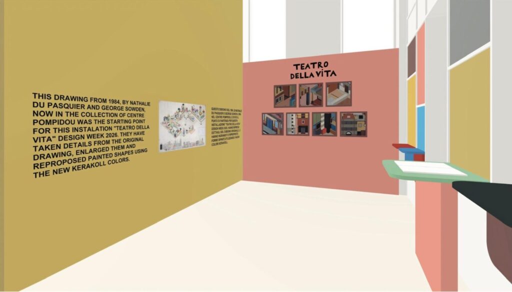 In occasione della Milano Design Week 2026, Kerakoll presenta Teatro della Vita, l’installazione a grandezza naturale firmata dai designer Nathalie Du Pasquier e George Sowden, che trasforma Kerakoll Brera Studio, in via Solferino, in un palcoscenico urbano astratto, vibrante e sensoriale.