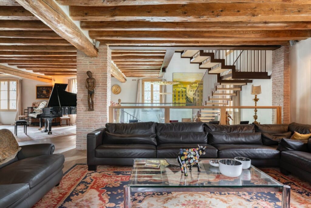 “Quello che rende unica questa dimora è la qualità tattile dei materiali. Passare la mano su questi pilastri storici mentre ci si muove tra arredi minimalisti e lampadari in cristallo regala una sensazione di lusso autentico, non ostentato. Ne è un esempio la magnifica scala in ferro e legno che sembra fluttuare nel salone, collegando i vari livelli con una leggerezza quasi eterea”, osserva Uberto Comunale.